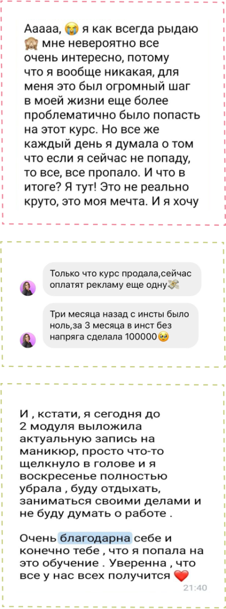 Проект не подразумевает под собой жесткие дедлайны, каждый работает в удобном для себя темпе. Я за комфортное прохождение обучения. Ты сама вправе выбирать формат и темп своей работы. Если ты не смогла присутствовать на онлайн встрече, то всегда можно будет пересмотреть и задать вопросы, но все ответы на них можно получить только в течении длительности проекта.